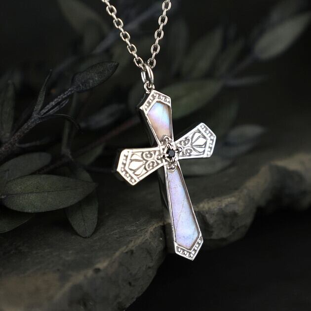 重厚感のあるゴシック調のクロスの中央には、一粒の天然石オニキスが入っています。