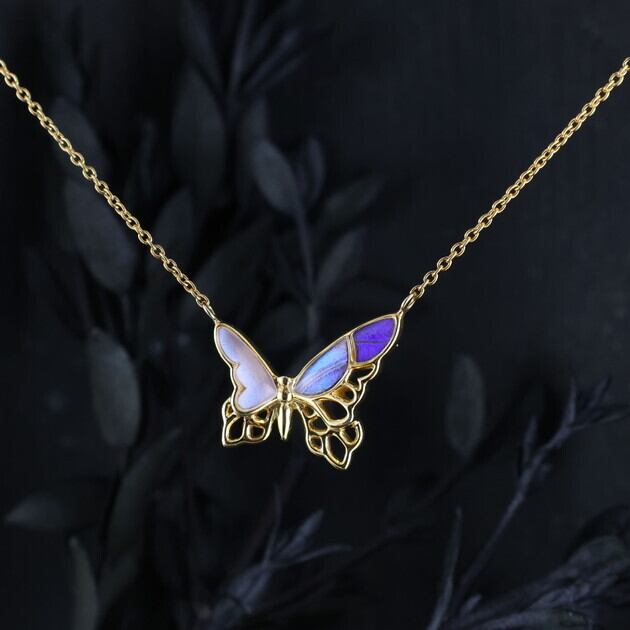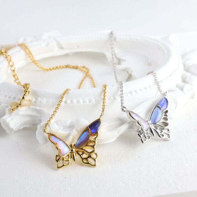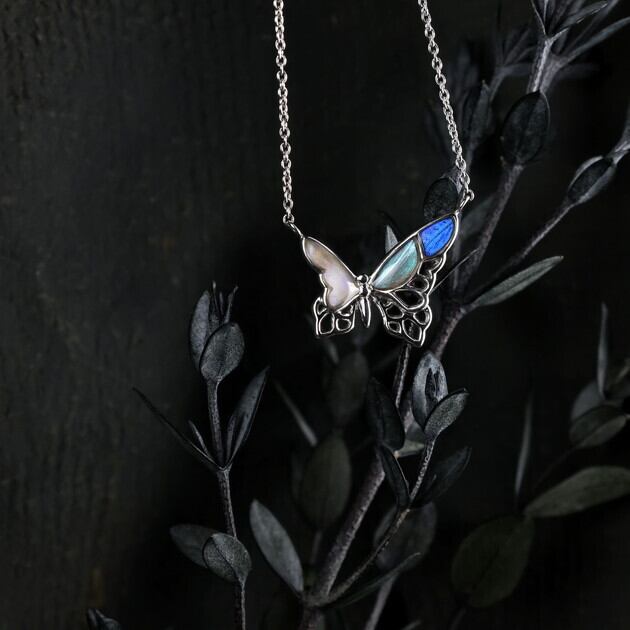 翅(はね)が欠けていたり、触角がない、傷が多い等の理由で標本としては利用できない蝶を優先的に使用し、アクセサリーへと新たに命を吹き込んでいます。
