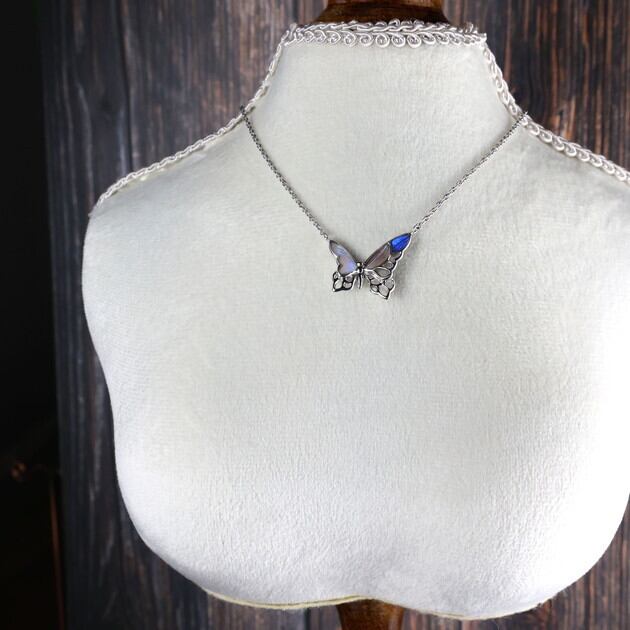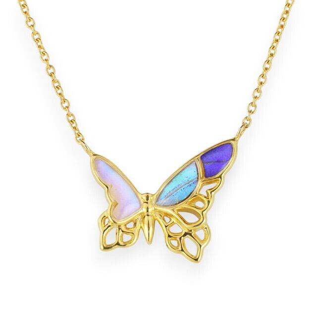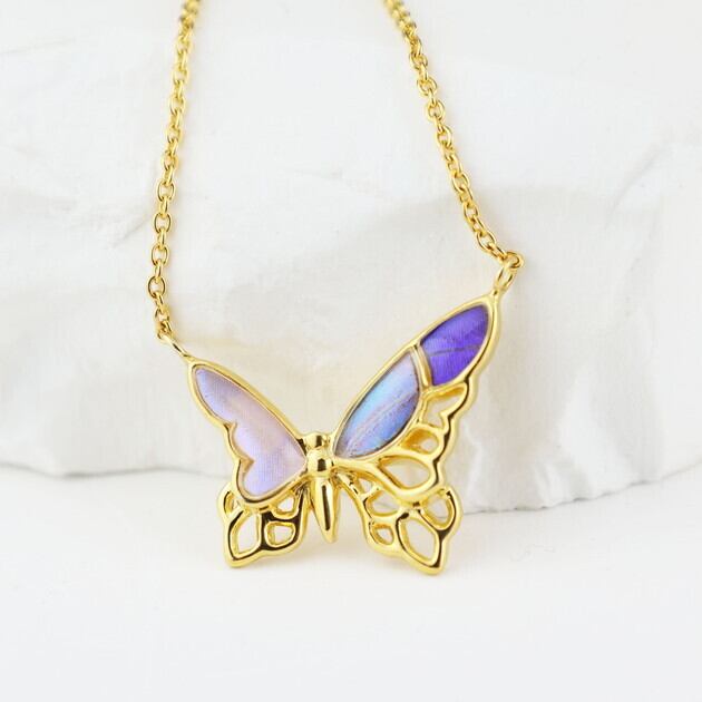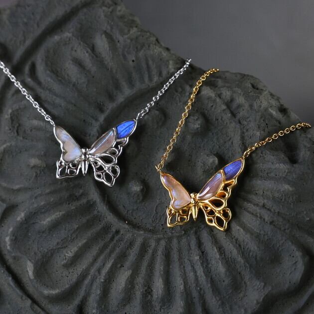 アシンメトリーな透かしの蝶デザインネックレス。