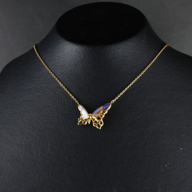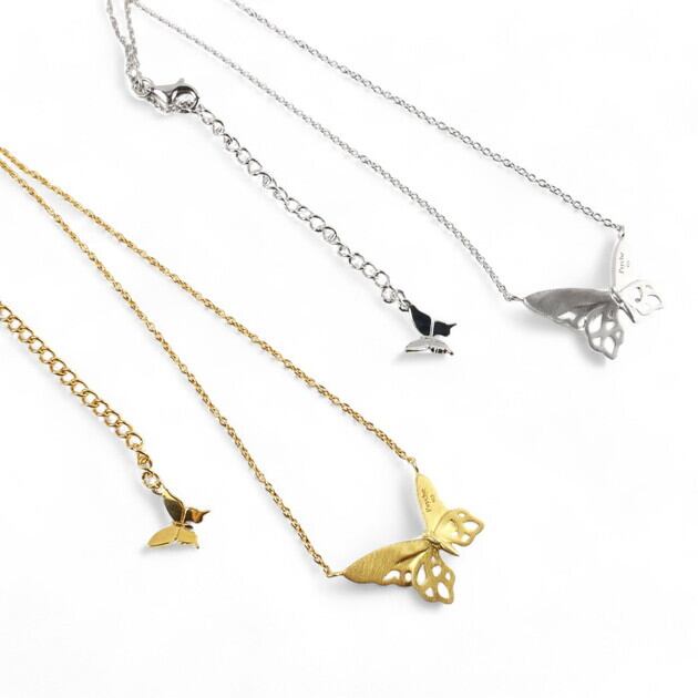 アシンメトリーな透かしの蝶デザインネックレス。