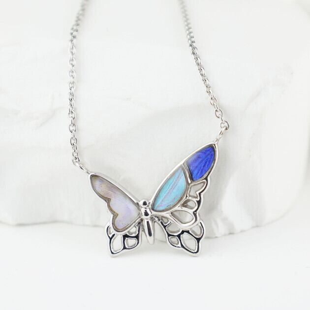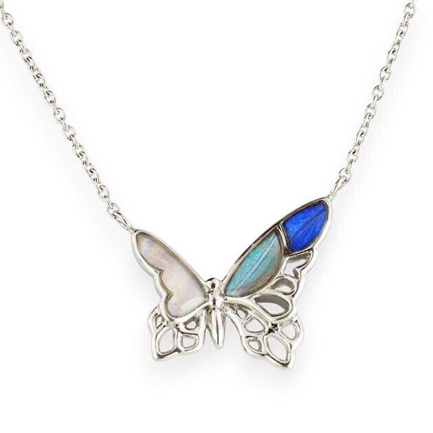 (Psyche/現品) [zps097r-morpho]本物の蝶の翅 バタフライ ネックレス [スルコウスキーモルフォ / ゼフィリティスモルフォ / カキカモルフォ]