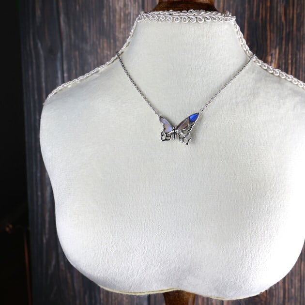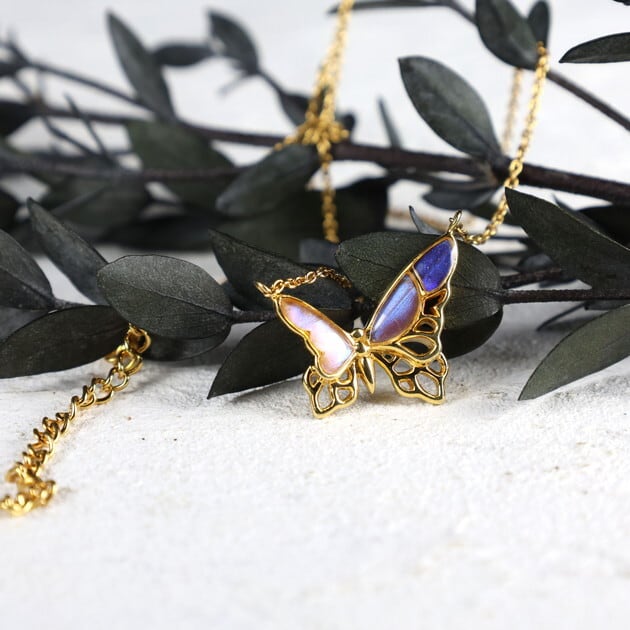 翅(はね)が欠けていたり、触角がない、傷が多い等の理由で標本としては利用できない蝶を優先的に使用し、アクセサリーへと新たに命を吹き込んでいます。