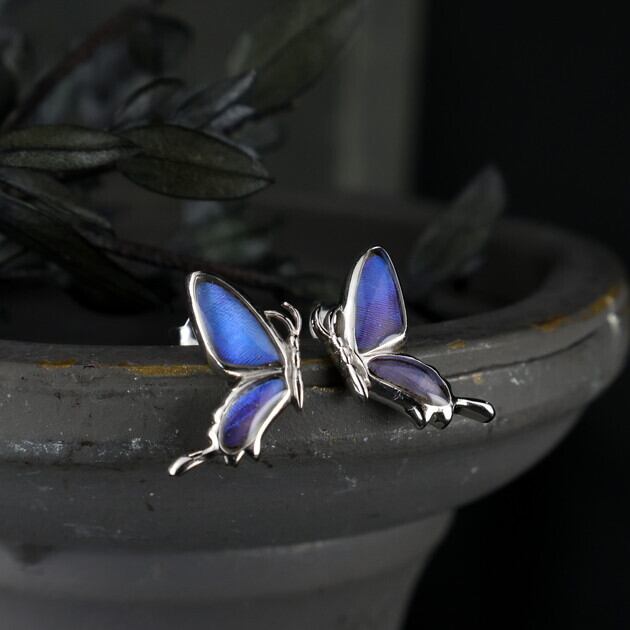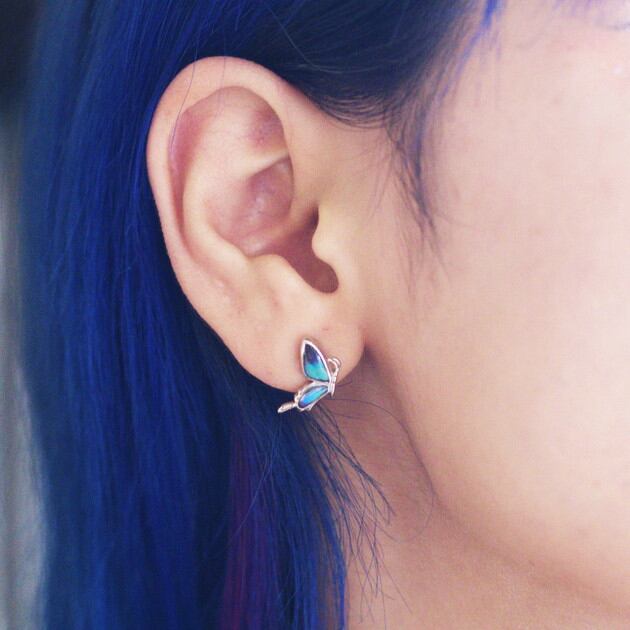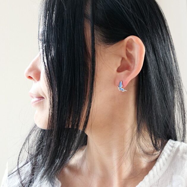 耳たぶサイズの小さめモチーフながら、中に入れた羽の輝きと、触角まで再現した繊細なデザインで、ちらりと耳元に見えた時の存在感は抜群です。