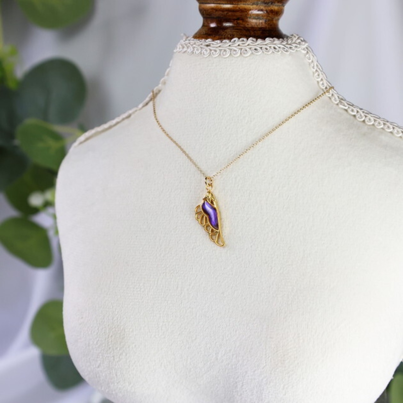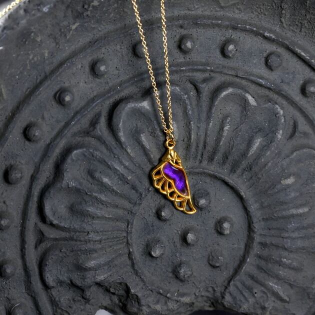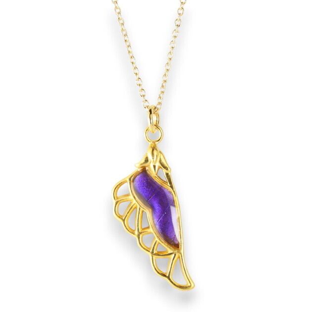 [zps094g-pur][ムラサキツバメ] 本物の蝶の翅 上翅デザインネックレス(小)