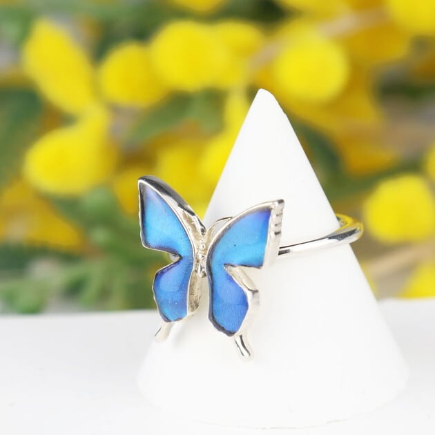 (Psyche/現品) 本物の蝶の翅 小さなアゲハ蝶 リング 12号 [カキカモルフォ][zps024-cac-12]