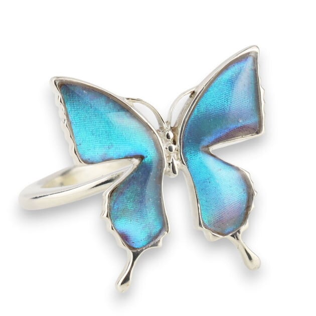 (Psyche/現品) 本物の蝶の翅 小さなアゲハ蝶 リング 13号 [ゼフィリティスモルフォ][zps024-zep-13]