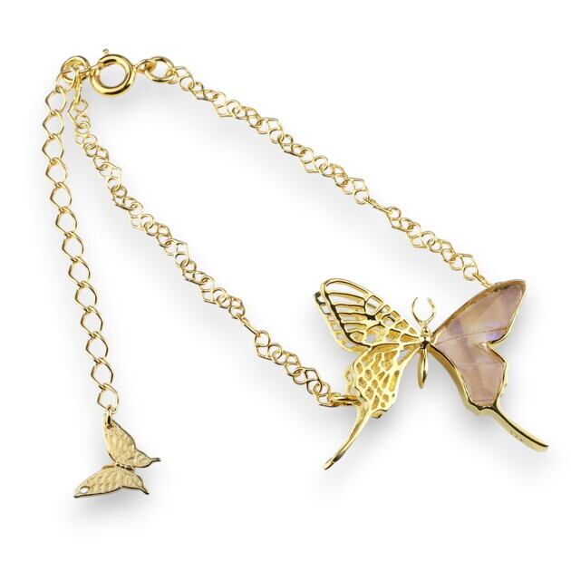 [zps061g-sul]本物の蝶の翅 透かしデザインアゲハ蝶 ブレスレット [スルコウスキーモルフォ]