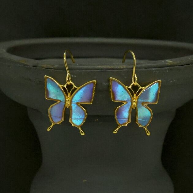 [zps005g-zep]本物の蝶の翅 アゲハ蝶デザイン ピアス [ゼフィリティスモルフォ]