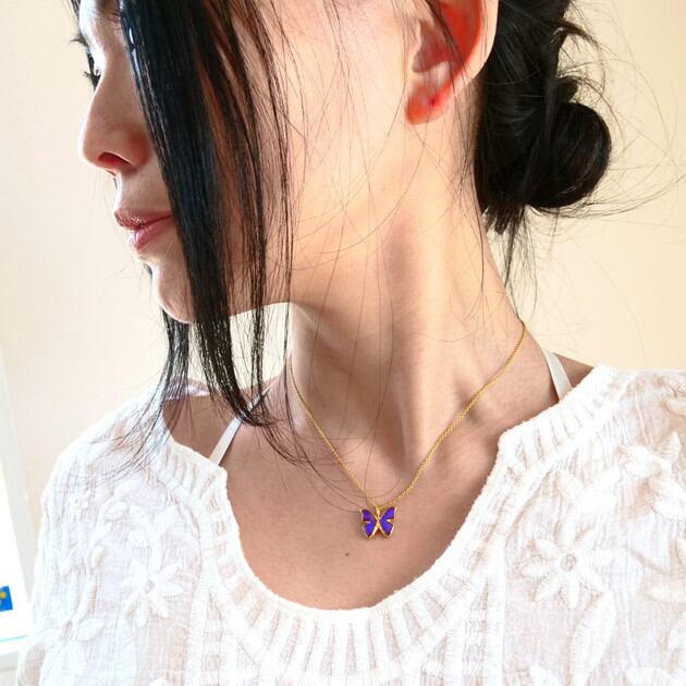 モルフォ蝶をモチーフにした、シンプルなバタフライネックレス。