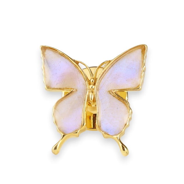 上翅と下翅の間を仕切らず羽を入れたデザインで、小振りながらも羽の輝きを存分に楽しんで頂けます。