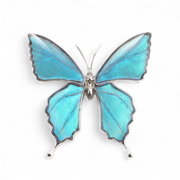 [Psyche/現品] [zps025r-zep]本物の蝶の翅 アゲハ蝶 ブローチ兼ペンダント [ゼフィリティスモルフォ]