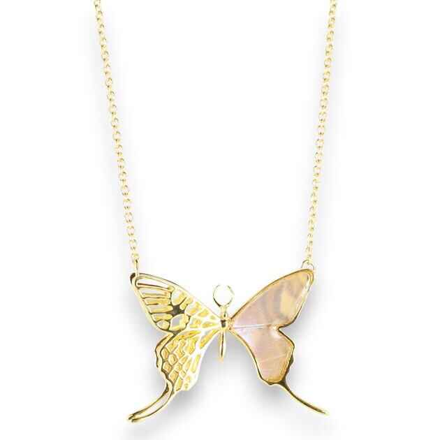 [Psyche/現品] [zps027g-sul][スルコウスキーモルフォ] 本物の蝶の翅 透かしデザインアゲハ蝶ネックレス