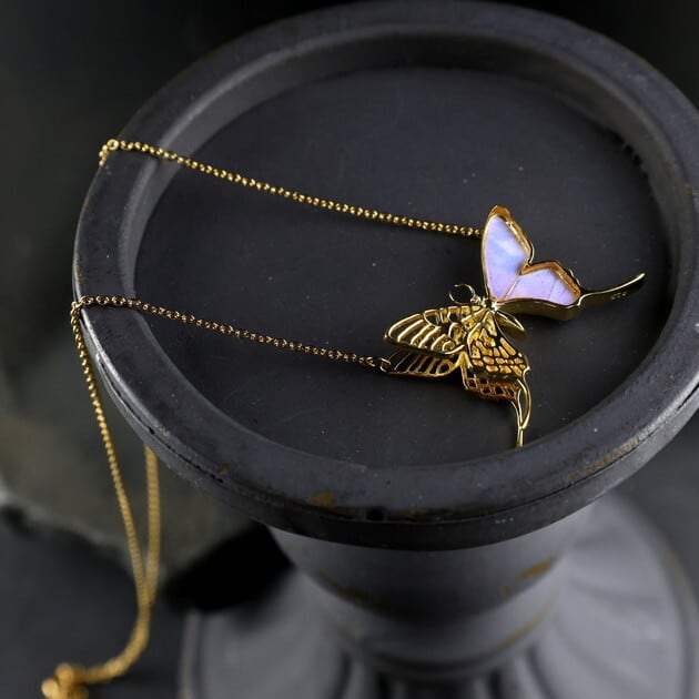 軽やかで繊細な透かしデザインの蝶のネックレス。
