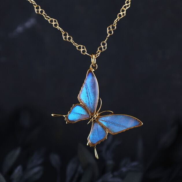翅(はね)が欠けていたり、触角がない、傷が多い等の理由で標本としては利用できない蝶を優先的に使用し、アクセサリーへと新たに命を吹き込んでいます。 また、ワシントン条約等の法律は遵守しております。