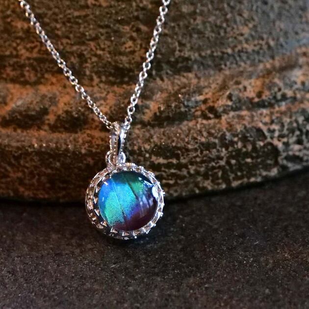 翅(はね)が欠けていたり、触角がない、傷が多い等の理由で標本としては利用できない蝶を優先的に使用し、アクセサリーへと新たに命を吹き込んでいます。 また、ワシントン条約等の法律は遵守しております。