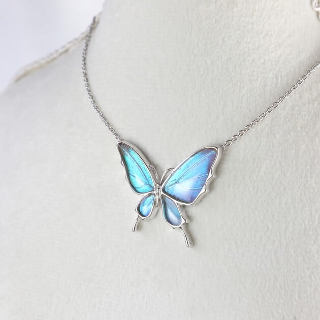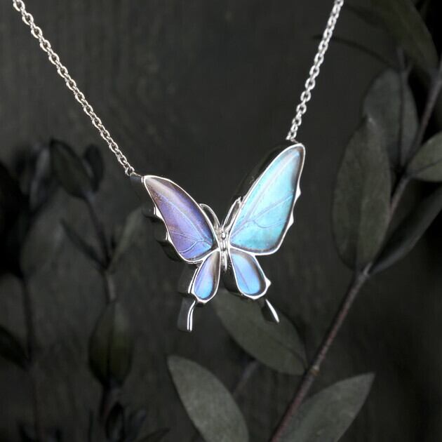 [zps031r-zep][ゼフィリティスモルフォ] 本物の蝶の翅 舞い飛ぶ蝶 ネックレス