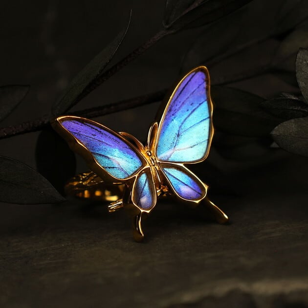 翅(はね)が欠けていたり、触角がない、傷が多い等の理由で標本としては利用できない蝶を優先的に使用し、アクセサリーへと新たに命を吹き込んでいます。 また、ワシントン条約等の法律は遵守しております。