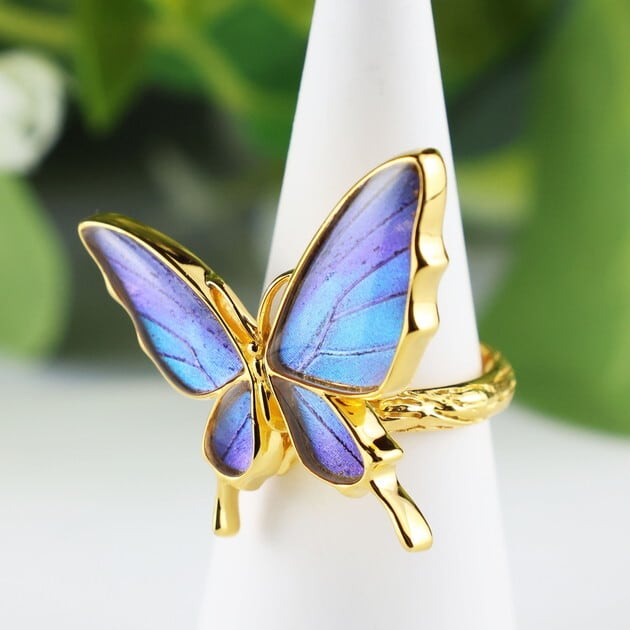 メリハリの利いたアシンメトリーデザインの蝶リング。