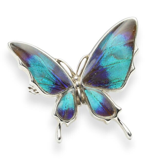 翅(はね)が欠けていたり、触角がない、傷が多い等の理由で標本としては利用できない蝶を優先的に使用し、アクセサリーへと新たに命を吹き込んでいます。 また、ワシントン条約等の法律は遵守しております。