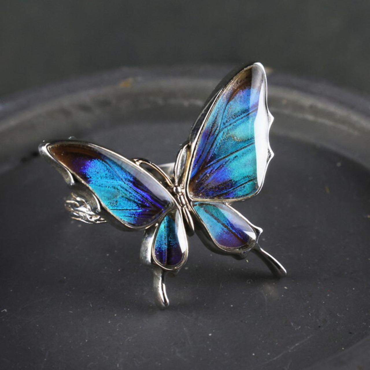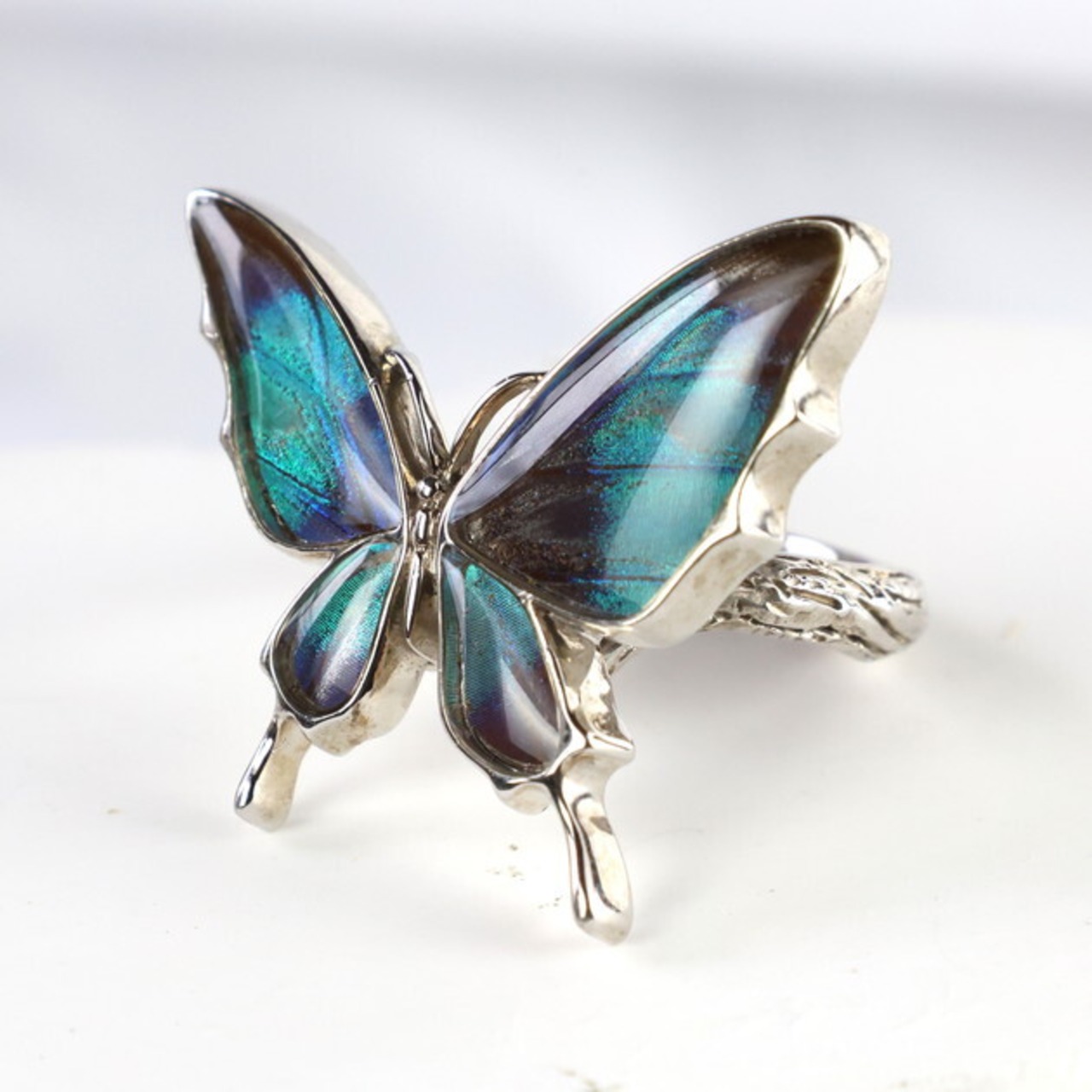 [Psyche/現品] [zps033r-gr][ドクソコパチェルビナ] 本物の蝶の翅 舞い飛ぶ蝶 リング =フリーサイズ=