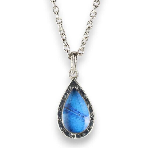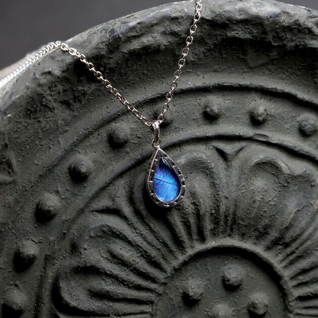 [Psyche/現品] [zps035i-cac][カキカモルフォ] 本物の蝶の翅 ゴシック調ティアドロップ 雫ネックレス