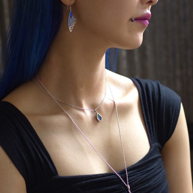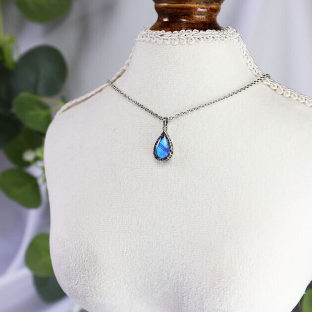 ゴシック調の重厚感あるデザインの雫型ネックレス。