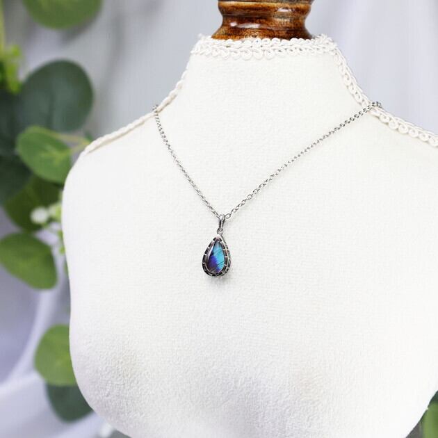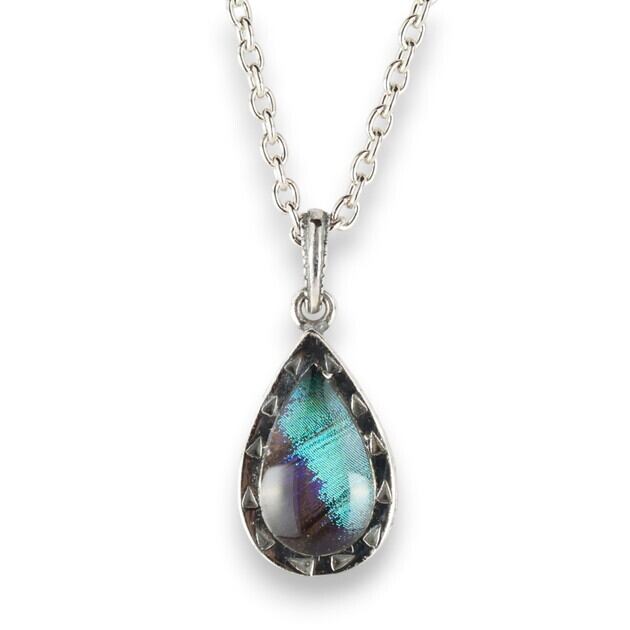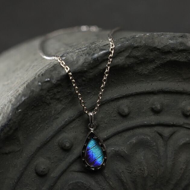 [Psyche/現品] [zps035i-gr][ドクソコパチェルビナ] 本物の蝶の翅 ゴシック調ティアドロップ 雫ネックレス