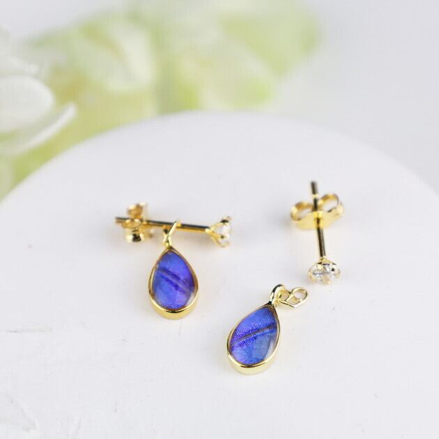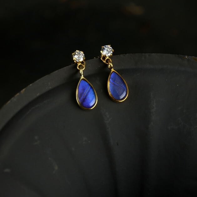 翅(はね)が欠けていたり、触角がない、傷が多い等の理由で標本としては利用できない蝶を優先的に使用し、アクセサリーへと新たに命を吹き込んでいます。 また、ワシントン条約等の法律は遵守しております。