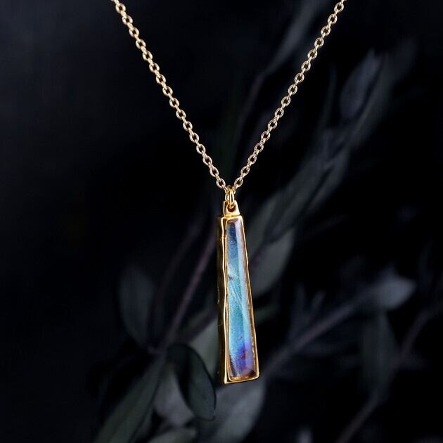 翅(はね)が欠けていたり、触角がない、傷が多い等の理由で標本としては利用できない蝶を優先的に使用し、アクセサリーへと新たに命を吹き込んでいます。 また、ワシントン条約等の法律は遵守しております。