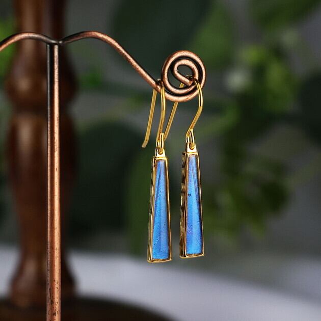 翅(はね)が欠けていたり、触角がない、傷が多い等の理由で標本としては利用できない蝶を優先的に使用し、アクセサリーへと新たに命を吹き込んでいます。 また、ワシントン条約等の法律は遵守しております。