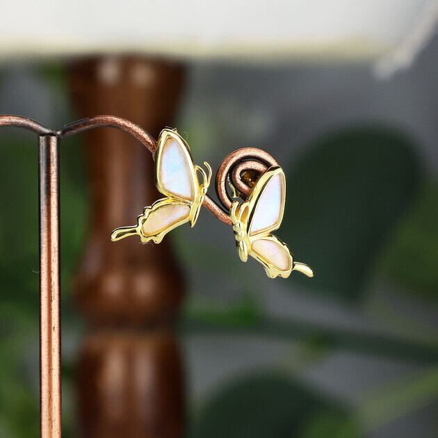 小さなアゲハ蝶が耳にとまるスタッドピアス。
