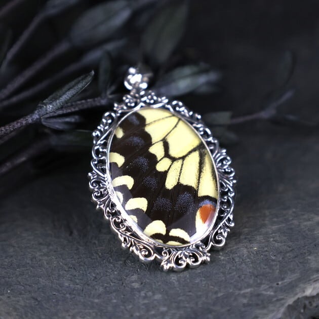 翅(はね)が欠けていたり、触角がない、傷が多い等の理由で標本としては利用できない蝶を優先的に使用し、アクセサリーへと新たに命を吹き込んでいます。