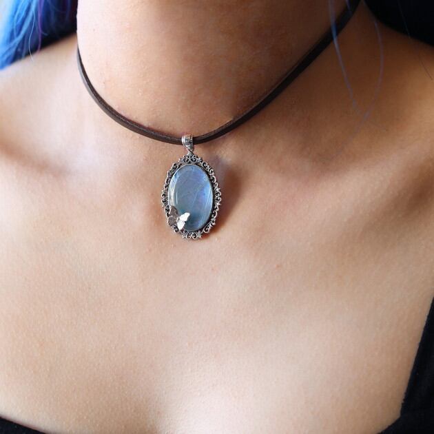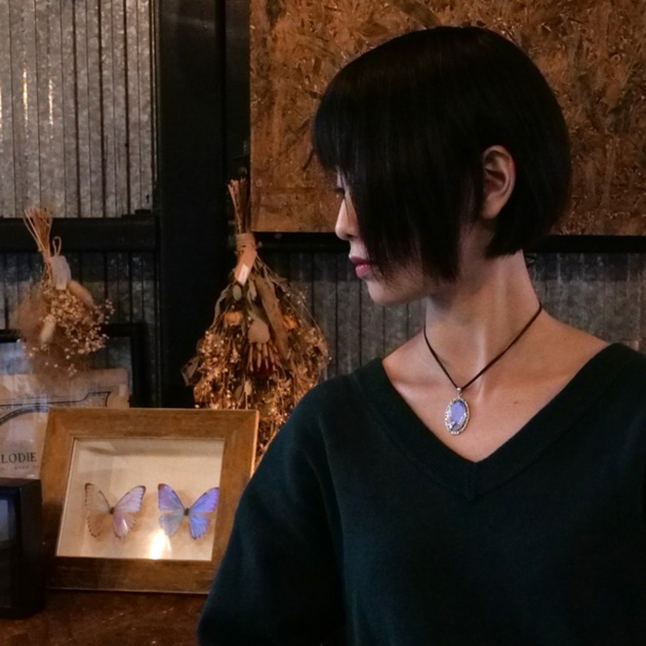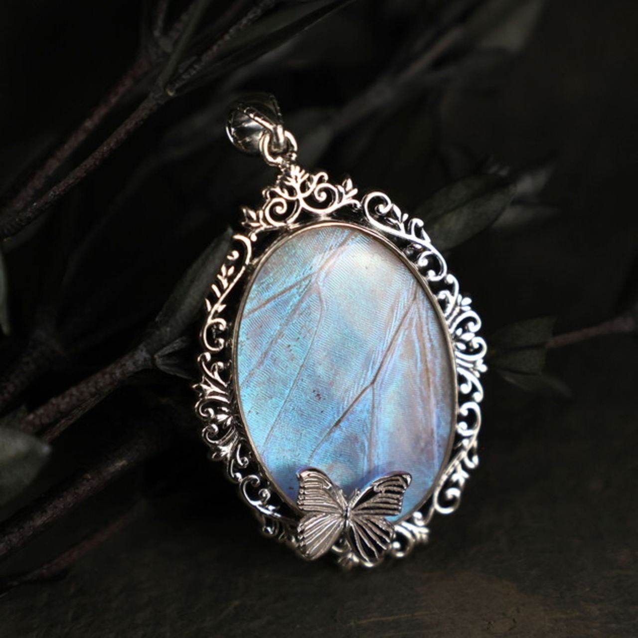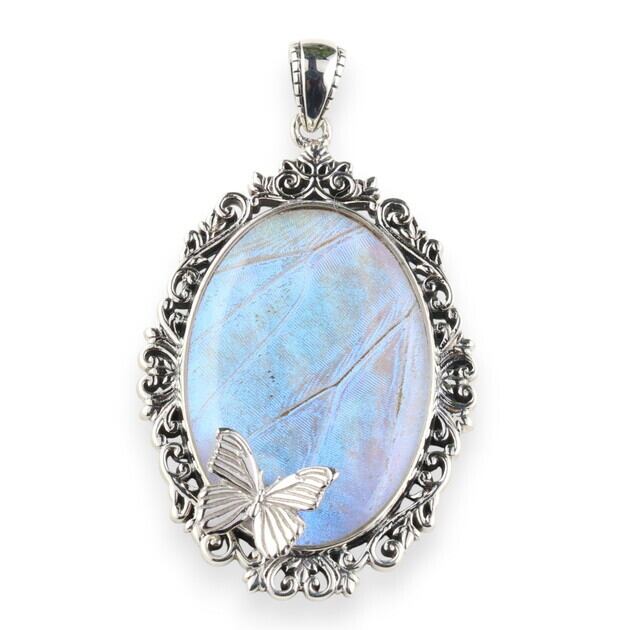 [Psyche/現品] [zps072i-sul][スルコウスキーモルフォ] 本物の蝶の翅 飾り枠オーバル ペンダント