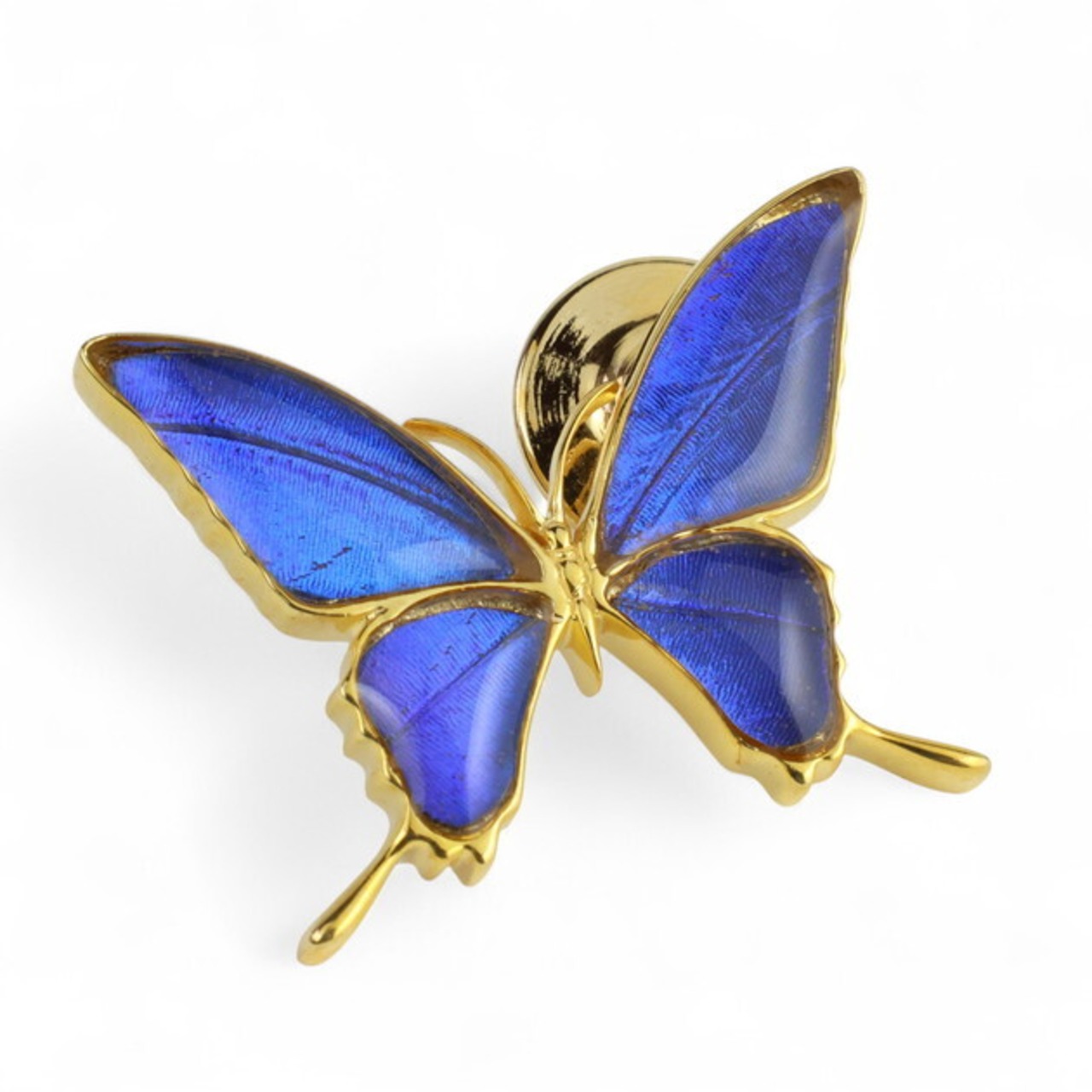 [zps076g-cac]本物の蝶の翅 タスキアゲハ ラペルピン ブローチ [カキカモルフォ]