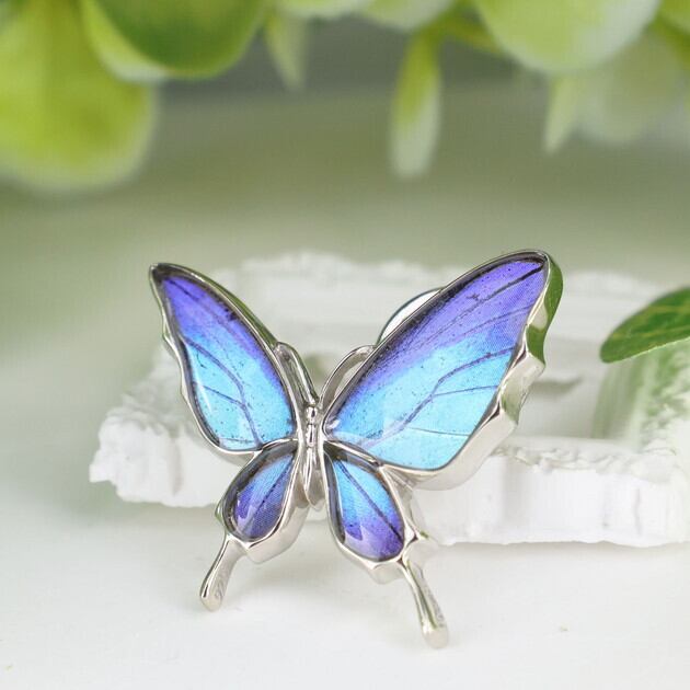 翅(はね)が欠けていたり、触角がない、傷が多い等の理由で標本としては利用できない蝶を優先的に使用し、アクセサリーへと新たに命を吹き込んでいます。