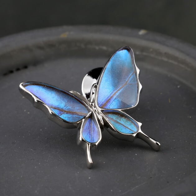 [Psyche/現品] [zps077r-zep]本物の蝶の翅 舞い飛ぶ蝶 ラペルピン ブローチ [ゼフィリティスモルフォ]