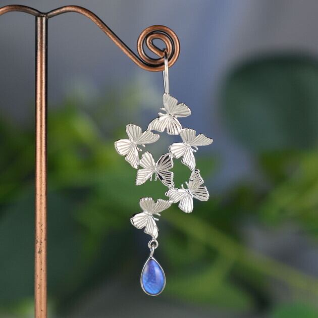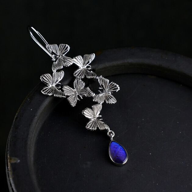 小さなティアドロップに、モルフォ蝶達が遊ぶフックピアス。