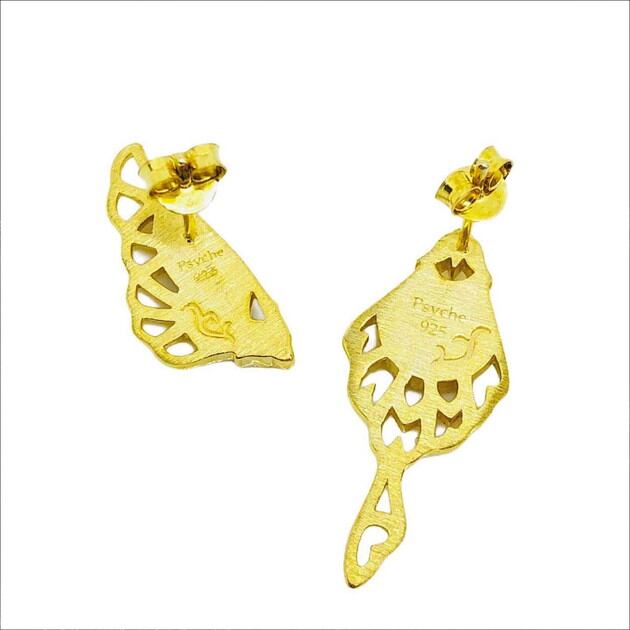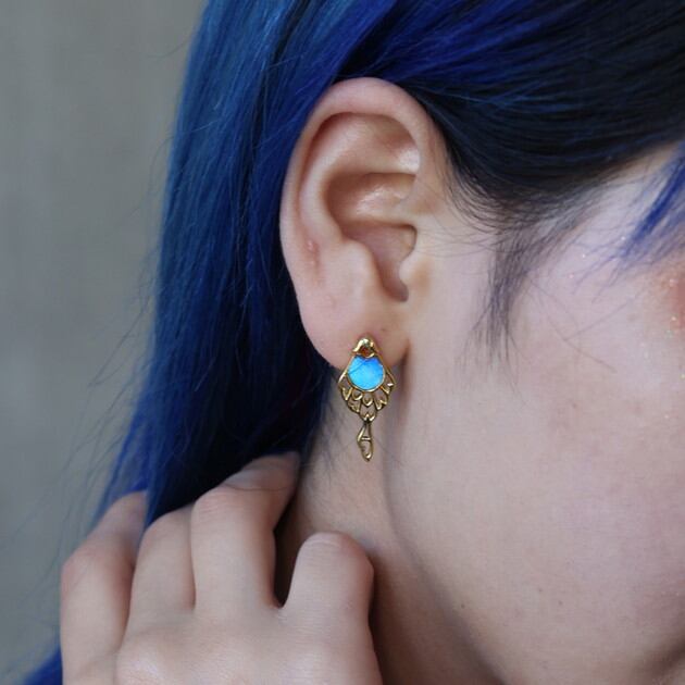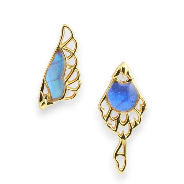 小さな透かしのアゲハ蝶を、上翅と下翅のアシンメトリーピアスにしました。
