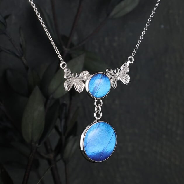 翅(はね)が欠けていたり、触角がない、傷が多い等の理由で標本としては利用できない蝶を優先的に使用し、アクセサリーへと新たに命を吹き込んでいます。