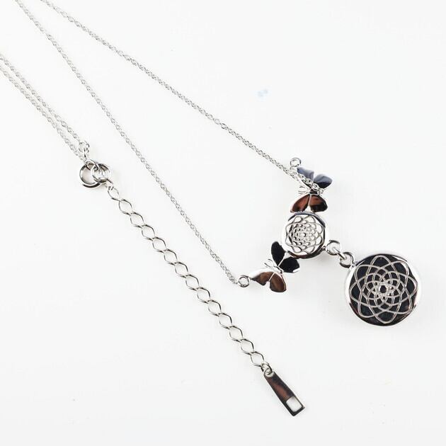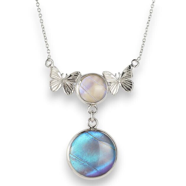 [zps093r-sz]本物の蝶の翅 揺れるラウンド モルフォ蝶ネックレス [スルコウスキーモルフォ / ゼフィリティスモルフォ]