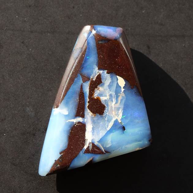 堆積岩などの中で生成されたオパールを母岩ごと研磨して仕上げたものが、ボルダーオパールです。