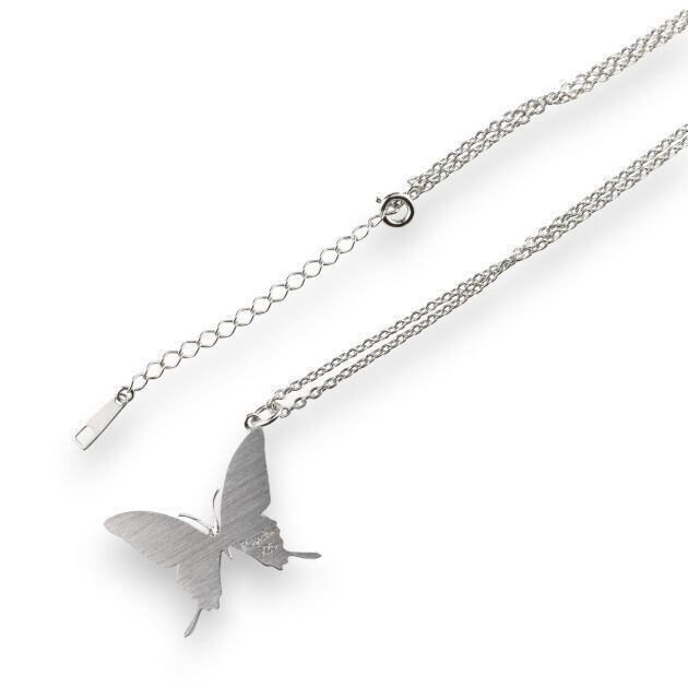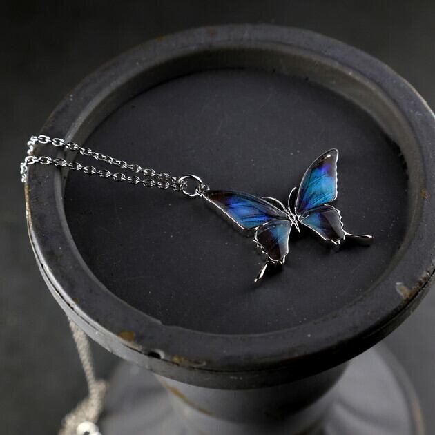 シャープなフォルムが印象的なタスキアゲハをモチーフにした蝶のネックレス。