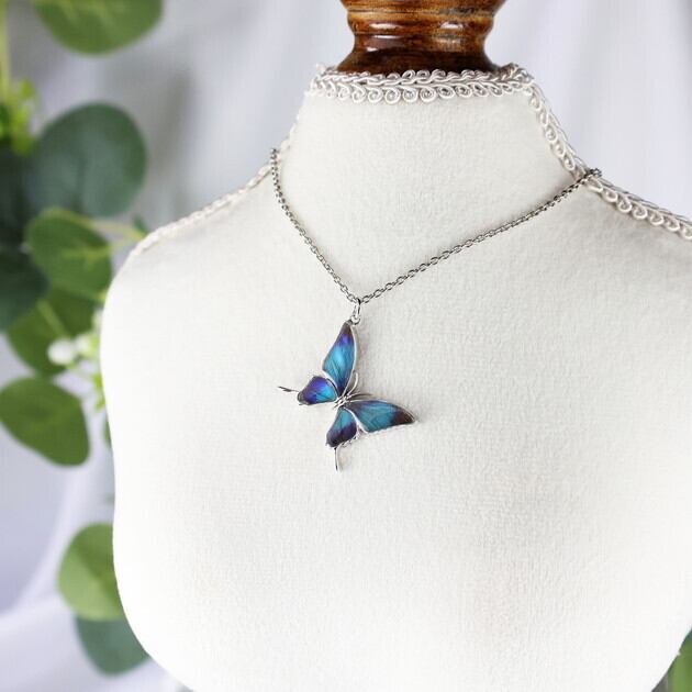 翅(はね)が欠けていたり、触角がない、傷が多い等の理由で標本としては利用できない蝶を優先的に使用し、アクセサリーへと新たに命を吹き込んでいます。