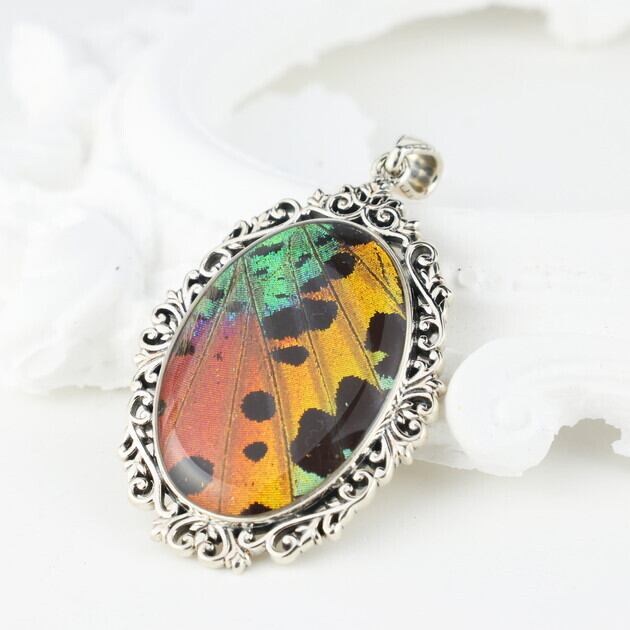 [zps072i-tubame][ニシキオオツバメガ] 本物の蝶の翅 飾り枠オーバル ペンダント