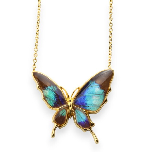 [Psyche/現品] [zps027g-gr][ドクソコパチェルビナ] 本物の蝶の翅 透かしデザインアゲハ蝶ネックレス
